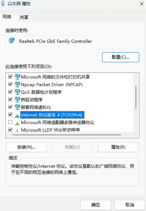 将管理端口用网线连接到电脑网口,电脑进入控制面板>网络和 Internet>网络和共享中心,点击这里的以太网>属性>Internet协议版本4