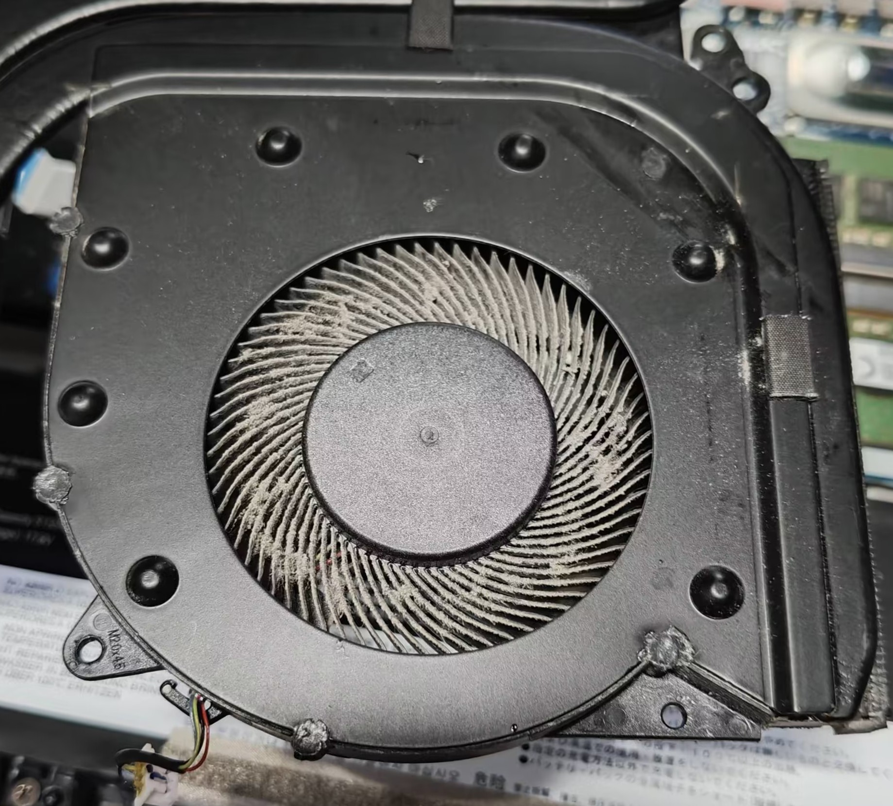 拆开风扇,由于拯救者y7000p2020的风扇是被塑料铆钉固定死的,需要削下来才能拆开,装回时可以用醋酸胶布固定