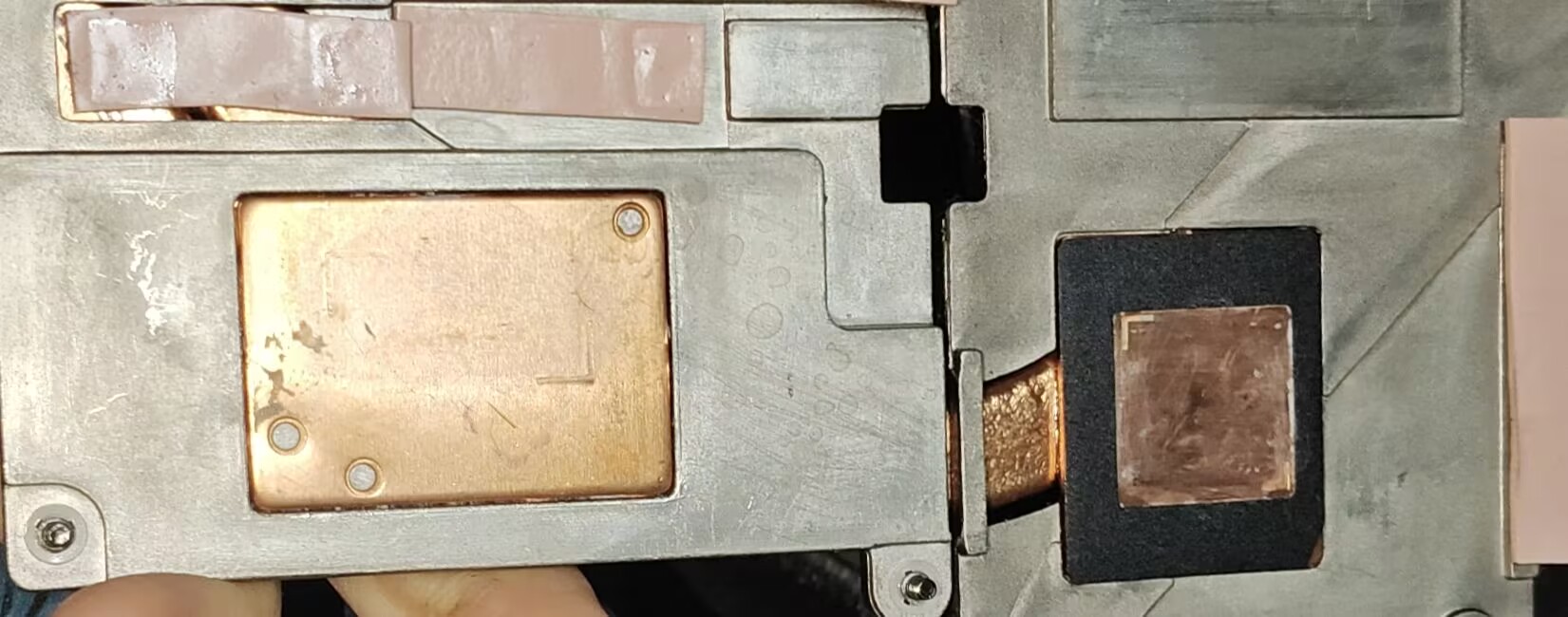把灰尘清理干净,在cpu和gpu上贴好霍尼韦尔7950相变片