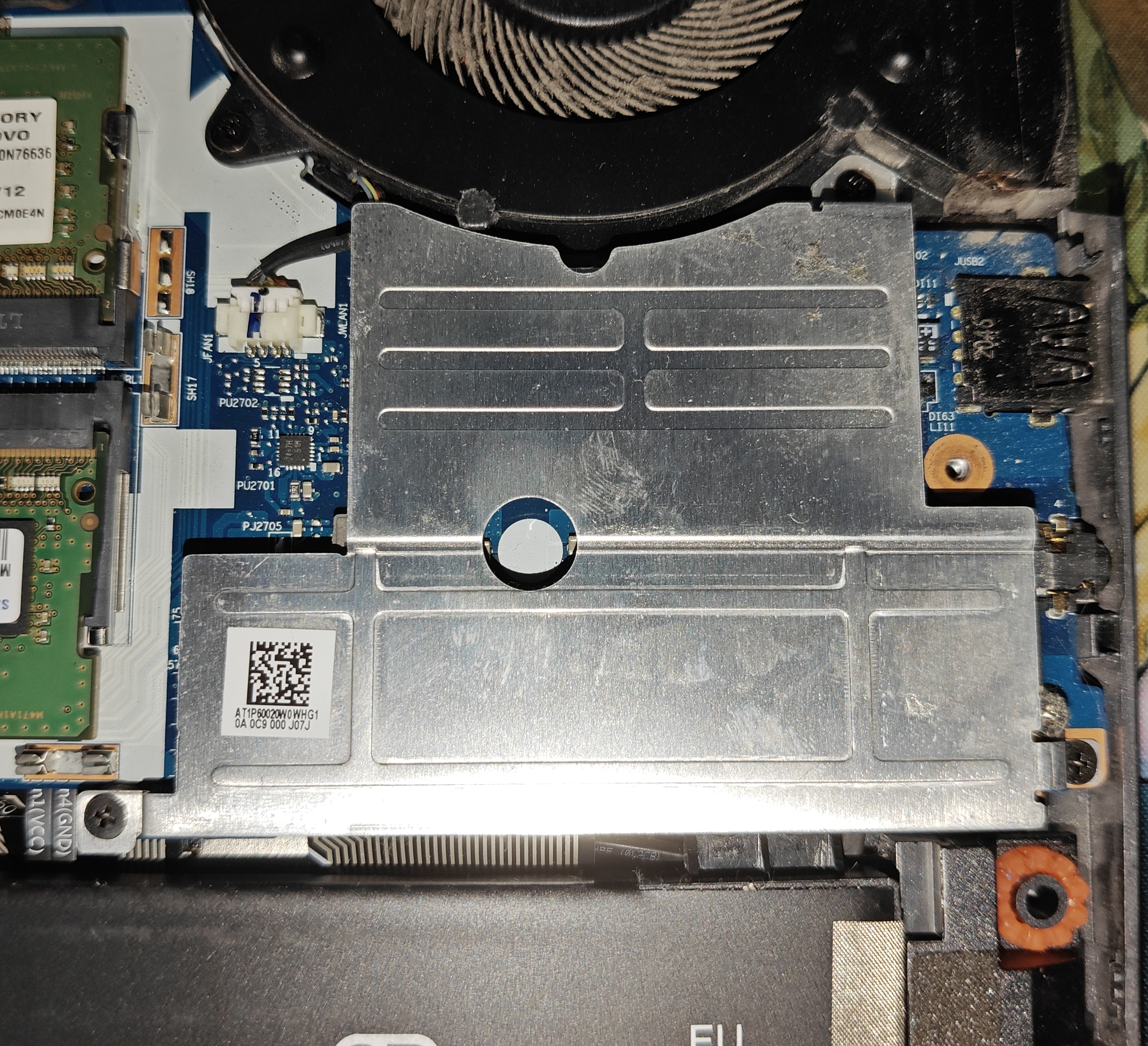 拆下内存盖板和固态散热马甲,拧下风扇固定螺丝