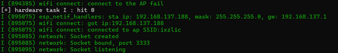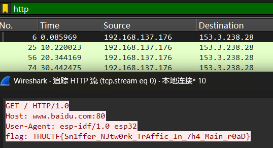 - 题目意思是ESP32 作为 MQTT 客户端,订阅了主题,向该主题发送一条消息,只要内容是一个 IP 地址,ESP32 收到后会主动向这个 IP 发起 HTTP 请求,请求中带有部分 flag 内容,藏在