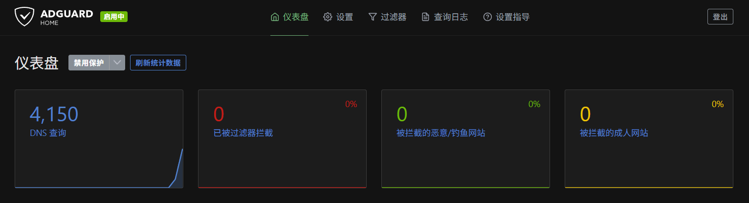刷新AdGuardHome仪表盘页面,收到DNS查询说明配置成功