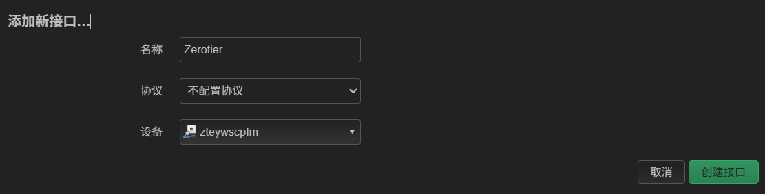 在网络>接口>添加新接口中按照图片进行设置并创建