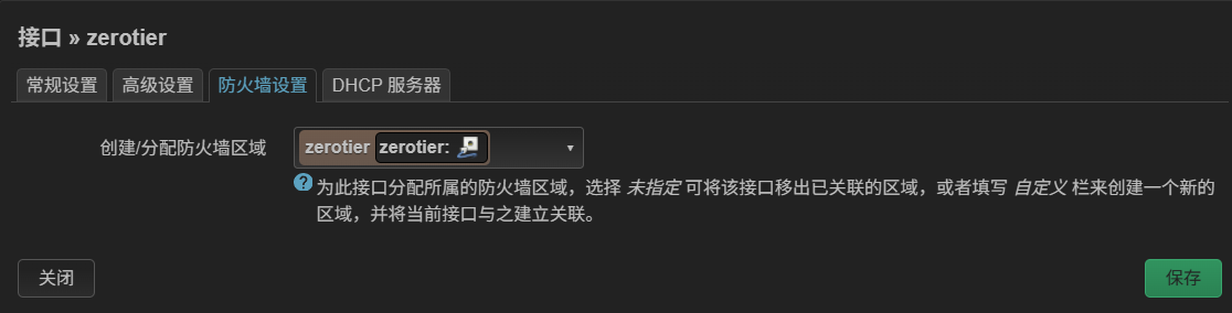 回到网络>接口,点击编辑刚刚创建的接口,在防火墙设置中分配防火墙区域