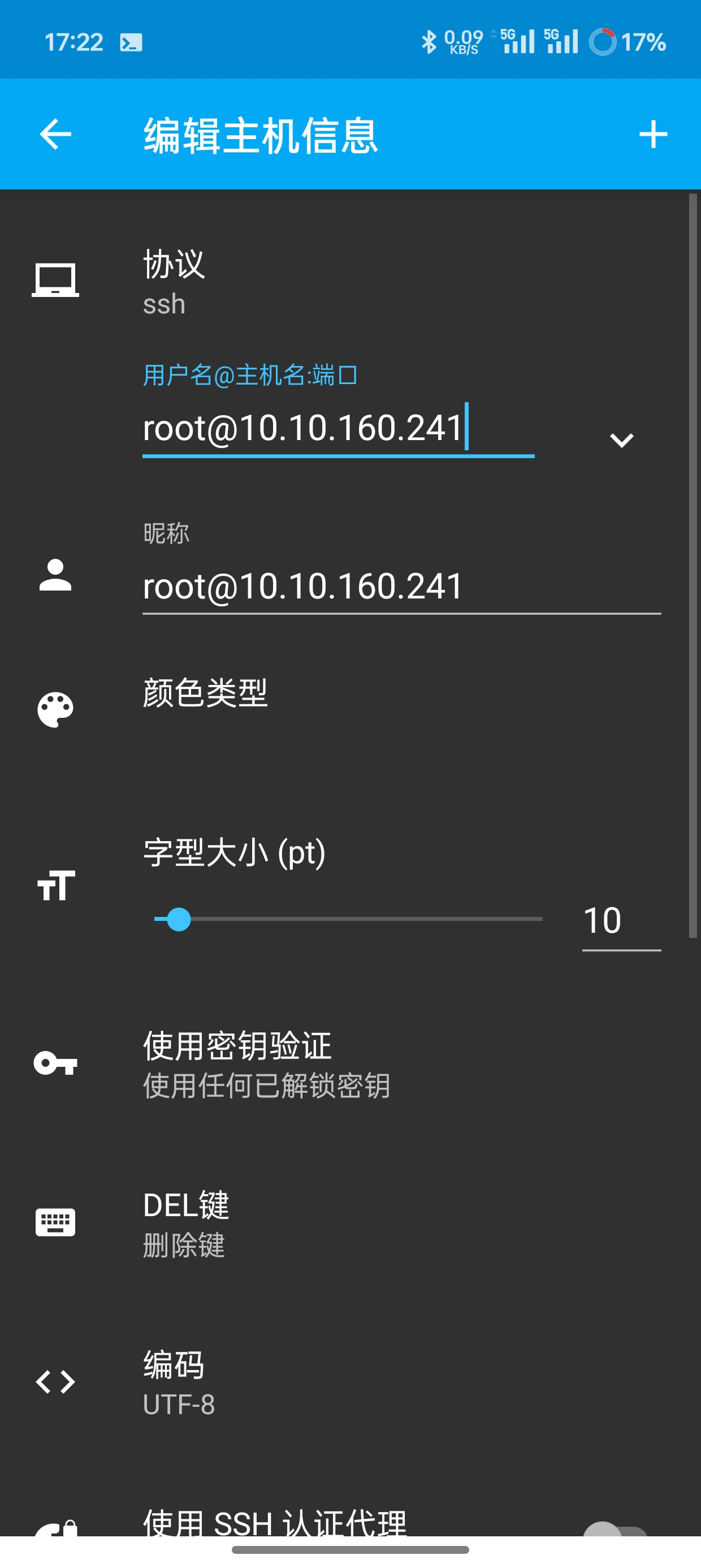 在ConnectBot的添加设备界面填写信息并添加
