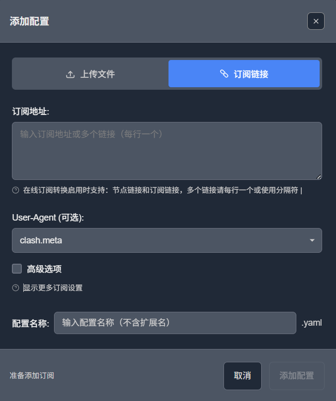 添加机场的订阅文件,复制链接导入