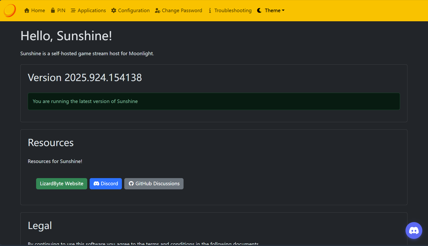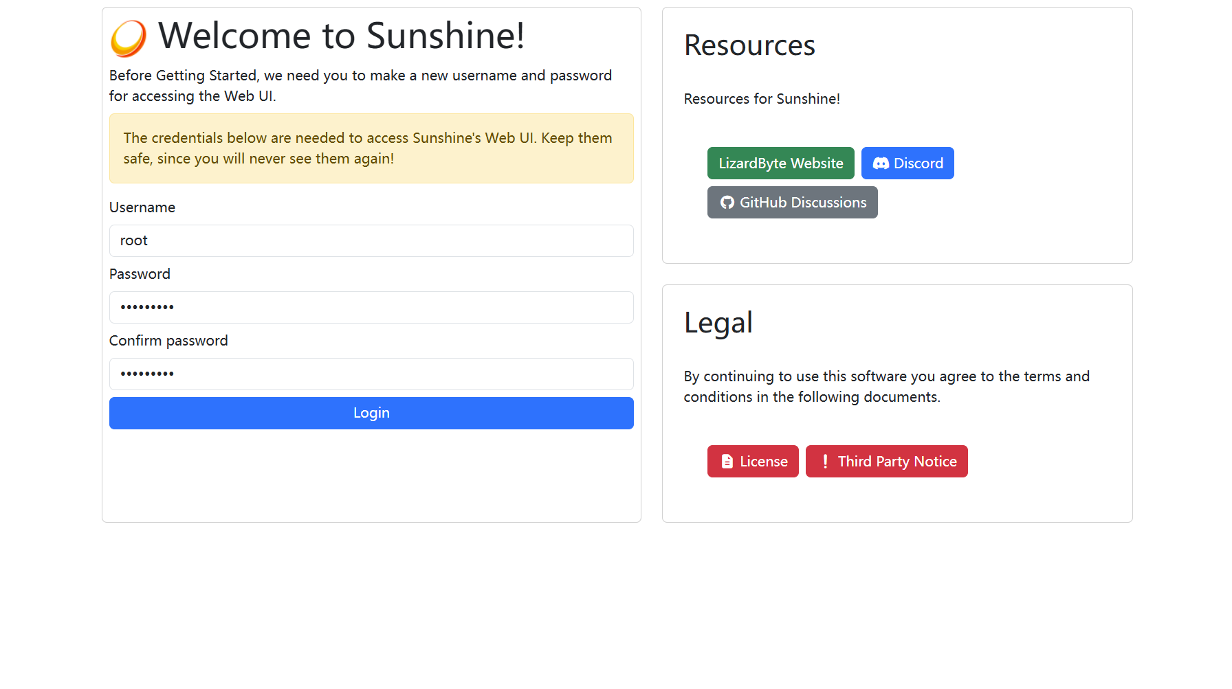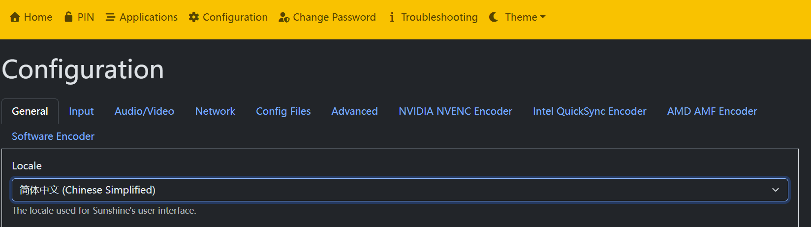 服务端安装Sunshine,然后以管理员身份运行,这里会给出管理地址