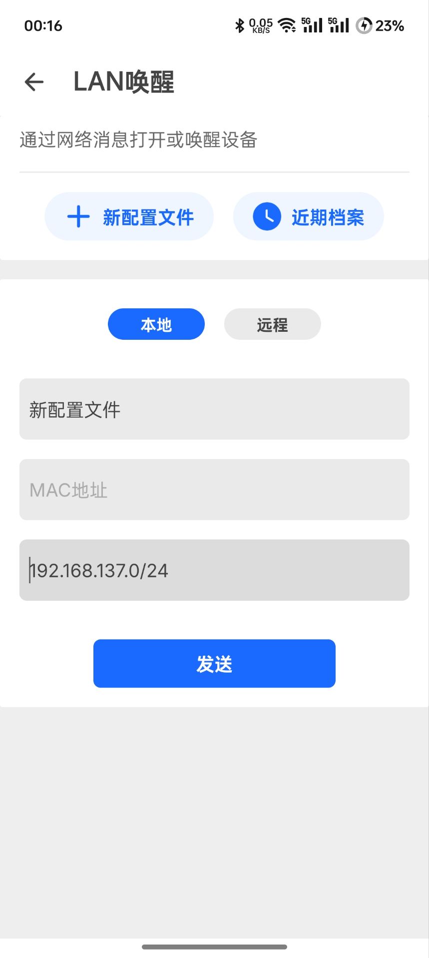 进入主机的界面,点击LAN唤醒,这里会自动填写好信息,点击发送即可