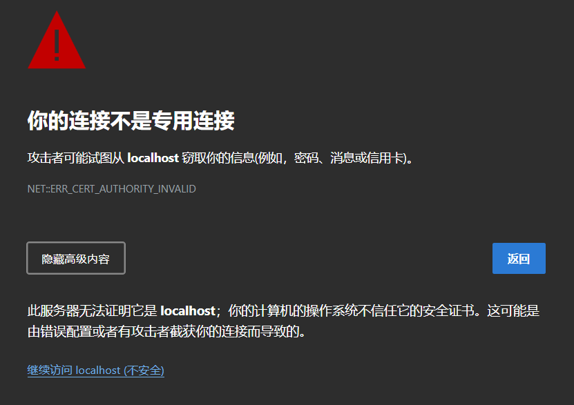 访问管理地址,第一次进入的时候浏览器会警告非私密链接,选择继续访问