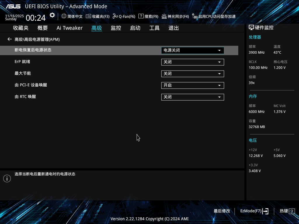 开机进入BIOS,进入高级模式,将由PCI-E设备唤醒设置为开启