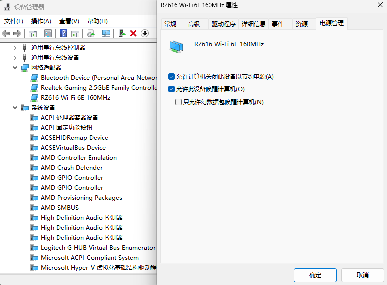 打开设备管理器>网络适配器>右键网卡>属性>电源管理,勾选允许此设备唤醒计算机